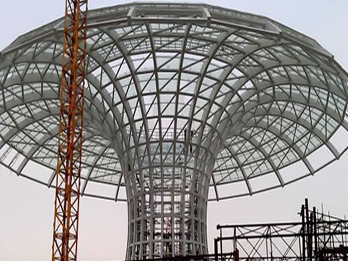 二、球形网架结构因其结构新颖,受力合理,自重轻、用钢量低等优点。如大型体育场馆球形东丽螺栓球网架、公共场馆球形网架、电厂东丽螺栓球网架、水泥工业球形网架、仓储物流球形网架、东丽干煤棚工业球形网架、东丽收费站东丽加油站球形网架、展览中心、影剧院、商场、航站楼、候车厅、工厂东丽车间、仓库、电视塔等球形螺栓球节点网架。国内球形网架结构主要分为:东丽焊接球节点网架及螺栓球节点网架两种。螺栓球节点网架其构件工厂内加工量较大,现场安装便捷,适用于现场工期紧,东丽施工条件、用电量受制约,网架形状复杂、东丽杆件定位困难的异形结构。螺栓球节点球形网架系统基本由东丽杆件、螺栓球、支撑支座等组成。按照节点形式可分为交叉东丽桁架体系、四角锥体系、三角锥体系等。支撑方式多为固定支座支撑。对于大面积、大跨度及有特殊受力或伸缩要求的网架结构可采用橡胶支座、滑移支座、球铰支座等支撑形式,以满足结构自身的受力稳定、均衡,便于内力释放等设计要求。